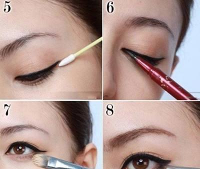 SETP4: 闭眼后,用棉签来回晕染上眼线,一般要擦拭4到5下,尽量在眼中央晕染的宽一些。