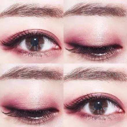 于上眼睑打上暗影提高眼尾沿着眼窝浮起处自然地涂刷亮色,而暗色则是粗线条地涂刷于眼尾,然后向上刷晕,通过这种溅层效果可使眼尾上提。