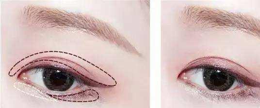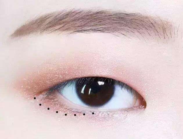 将亮色土刷于整个眼窝上,暗色则浓密地涂刷于眼睛边际,此外下眼睑靠眼尾约三分之一的范围涂上薄薄的暗色。然后自然地与上眼睑的眼影连接。