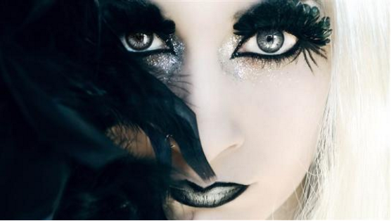(5)根据表演的需要,可以使用各种不同的形状、不同色彩的夸张假睫毛。