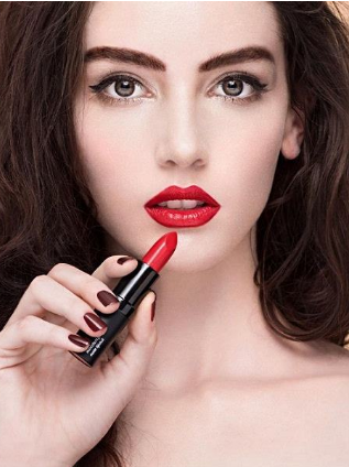 口红鲜艳,肤色显得白净:口红发暗,肤色看上去也比较暗;口红素气,其他部位会显得醒目,动人。醒目的口红,会使唇部突出于整个妆面。口红色彩的选择要与服装的颜色、腮红色系等方面相协调。有时单色填于唇部;有时在嘴角两侧填入深色,中间为亮色,采用两种以上的色彩组合。最重要的是因人而异、因妆而异、因需而异。