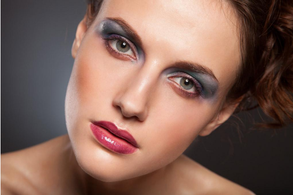 (2) 将腮红涂敷在颧骨下方,并向颧骨自然晕染,既增加了面部的色彩,又能突出颧骨的结构。
