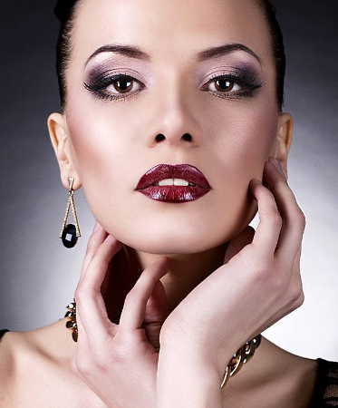 倒三角脸型下巴显得特别尖和长,适合下唇底部稍稍加厚可以缓解下巴的感觉。倒三角脸型会给人有些尖刻的感觉,在描画上唇时沿两边嘴角微微上翘,产生微笑的形态,聪明智慧中带有甜美温婉的柔情。
