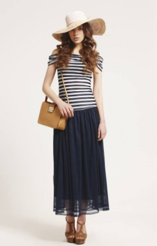例如,在服装设计中,横向分割是很常见的,不论是横向分割线或是上下装的长短搭配,其中比例关系是非常重要的,就如一个长方形中水平线的位置不同会使人产生长度不同的感觉。高腰裙的腰线紧贴胸下,穿了会使人显得较高,强调的是胸部;自然腰线的裙子长短适度;低腰裙的腰线是把整个裙子分成近似相等的两半,最容易使人显矮,强调的是腹部。这三种不利在很多服饰上都有体现。